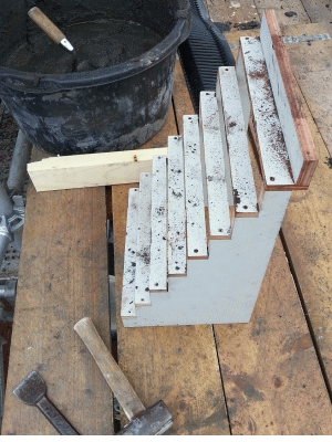 wonderlijk, wellicht een alternatief voor het formeel, om de stenen op elkaar te drukken tot de specie hard is?: ![]() |