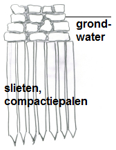 In de ontstane vakken heit men dan de palen van verschillende zwaarte en lengte. Langzamerhand zal men ontdekt hebben dat enkele lange palen tot op de vaste zandlaag geheid, minstens evenveel draagkracht bezitten als een bos slieten.