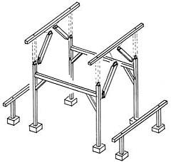 Het skelet of gebint werd vaak door de timmerman op zijn bouwplaats gemaakt. Daarna werd het vervoerd naar de plaats waar de boerderij moest worden gebouwd. Met behulp van telmerken (merktekens in het hout in de vorm van sneetjes in het hout, putjes of gebeitelde Romeinse cijfers) werd het gebint op zijn plaats gezet. Wanneer het in elkaar zat, moest het nog rechtop worden gezet. Dit opzetten was een zwaar karwei, waarbij vakkennis, kracht en samenwerking nodig waren. Het (hele) dorp kwam vaak helpen.