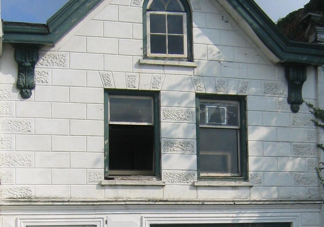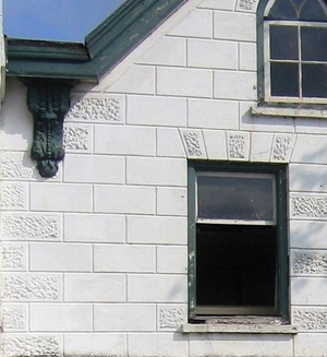 blokbepleistering met gebosseerd pleisterwerk, ca. 1900, foto hans terlouw (klik voor een bredere afbeelding): ![]() |