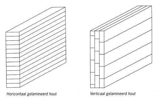 Eng. ook: laminated veneer lumber (LVL), engineered wood (daartoe behoort o.m. een gelamineerde balk, een houten I-ligger en laminaat voor de vloer)