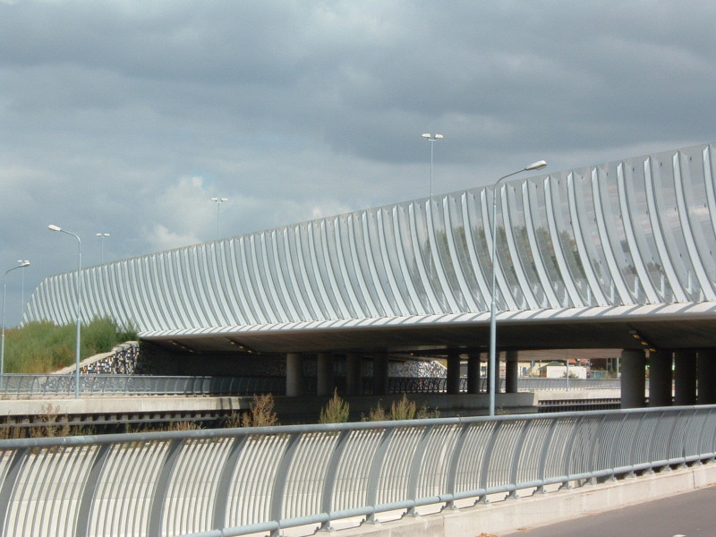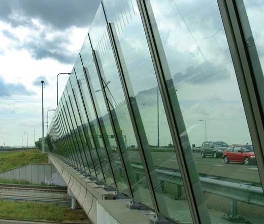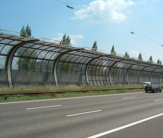 een aantal voorbeelden van geluidsschermen / geluidswallen