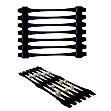 - geogrids waarbij de gaten geponst zijn (dus uit één "plaat")