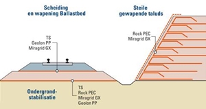 geogrid, scheiding en stabilisatie ballastbed en gewapend talud; klik voor groter (tencate): ![]() |