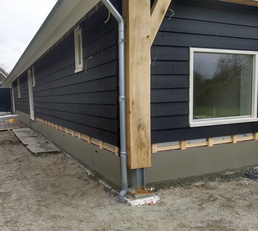 - soms: onvolkomenheden onderaan de gevel camoufleren