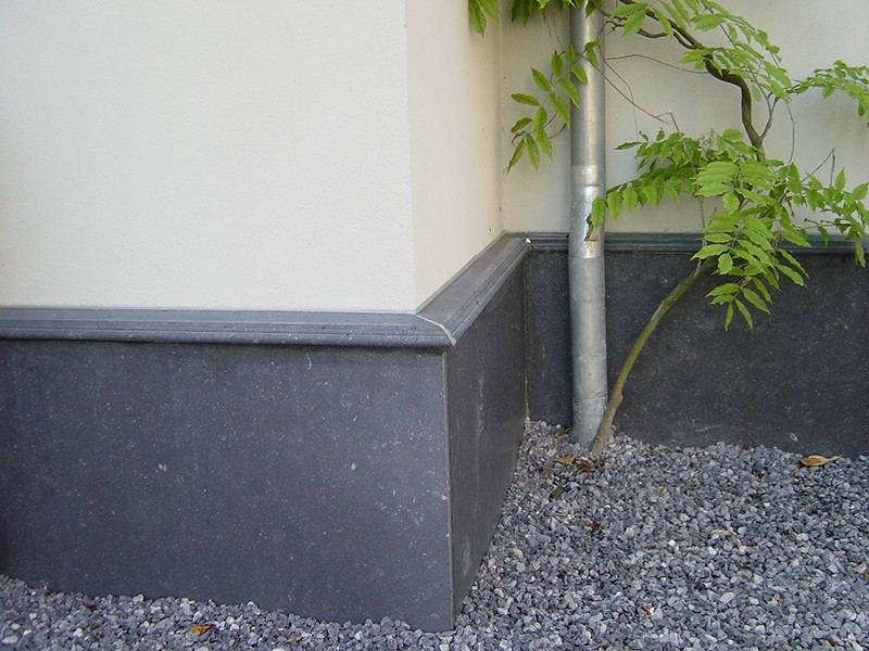 - als er al veel natuursteen in de gevel is toegepast, kan een plint van natuursteen wat teveel zijn (zeker bij een zeer hoge plint)