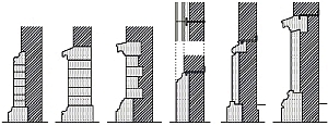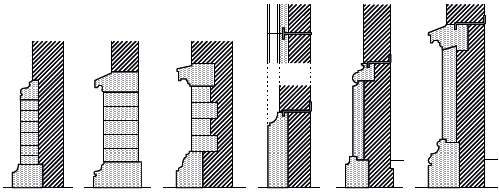 verschillende methoden om traditionele gevelplinten te maken met natuursteen (uit "materialen en technieken in historische metselwerkconstructies tussen 1830 en 1945" van laura le noir, universiteit gent): ![]() |