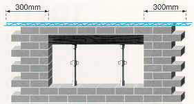 gewapend metselwerk voor een latei verder leggen dan de dagmaat (mur-tag): ![]() |