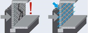 - om scheuren in metselwerk te beperken, om aardbevingsschade te beperken e.d., dus wanneer extra stevigheid in het metselwerk nodig is (eventueel ook na het ontstaan van scheuren), bijvoorbeeld: