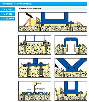 - thixotrope gietmortel (door roeren, schudden o.d. wordt de mortel vloeibaarder).