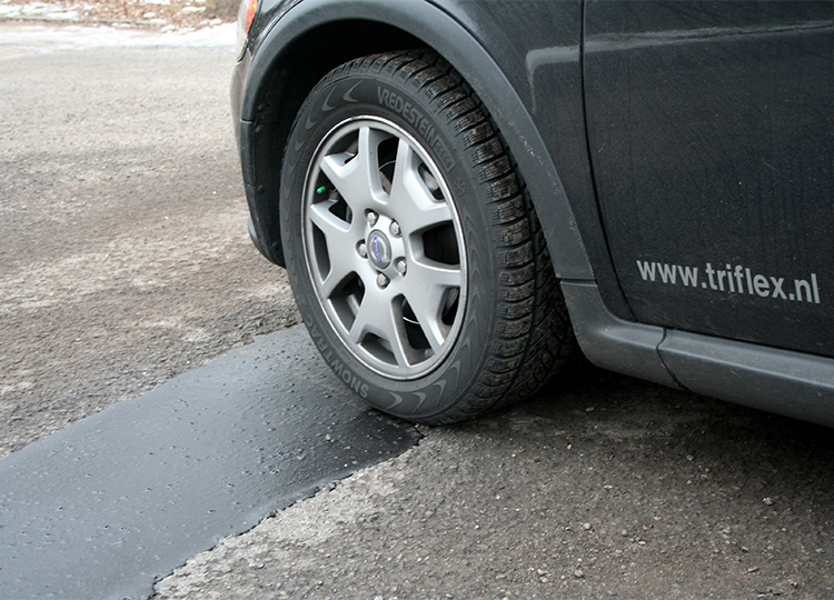 gietmortel op kunststof basis (hier pmma, polymethylmethacrylaat), asfaltreparatie (triflex): ![]() |
