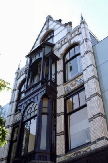 geglazuurde bakstenen toegepast, vooral door de sprekende kleuren. Tegenwoordig