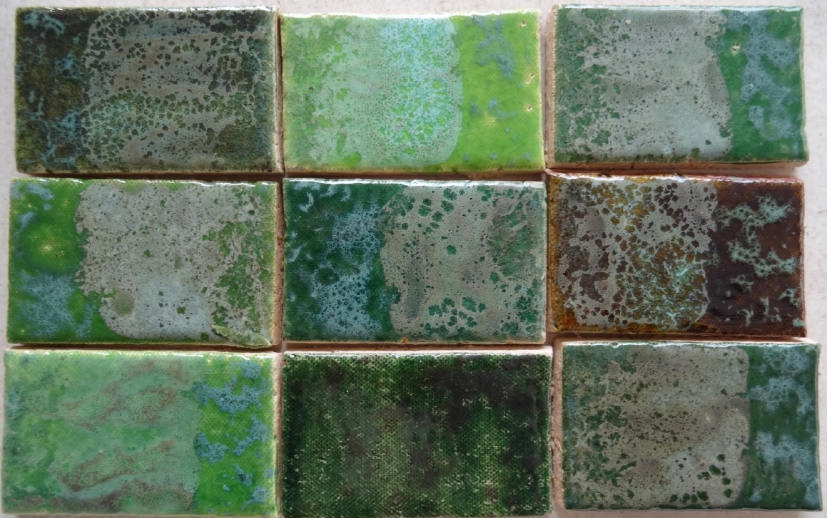voorbeeld van een serie levendige groenen met meer lagen glazuur (studio chritsine jetten): ![]() |