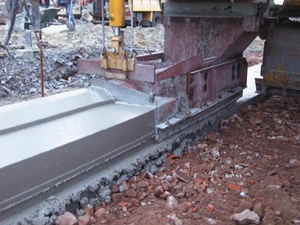 2. Glijbekisting is ook de benaming van de glijdende bekisting om bijvoorbeeld verhoogde banden te maken, zoals op onderstaande foto is te zien.