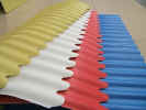 Verg. profielstaal (profielplaat), dakpanplaat. Eng. corrugated sheet, corrugated sheeting, corrugated sheet iron, corrugated sheet steel; corrugated metal