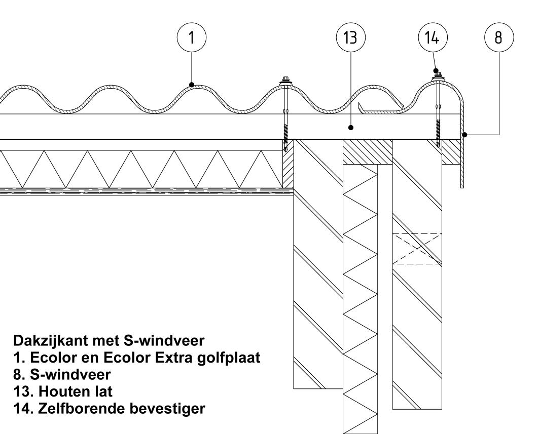 overlap bij golfplaten; klik voor groter (eternit): ![]() |