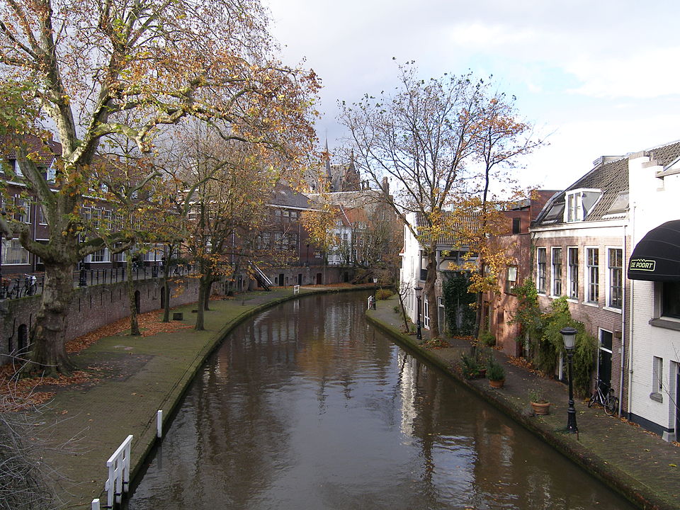 oudegracht bij ledig erf, utrecht; hier staat het water dicht bij "de straat", omdat dit deel van de oudegracht aanzienlijk lager ligt dan het normale straatniveau (foto japiot, wikipedia): ![]() |