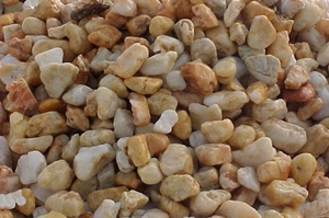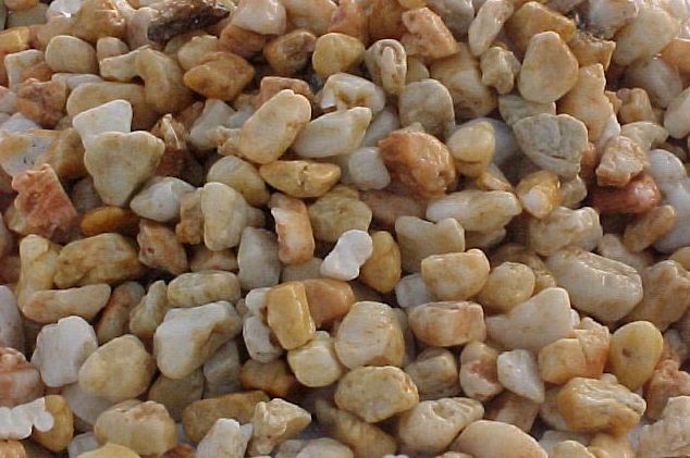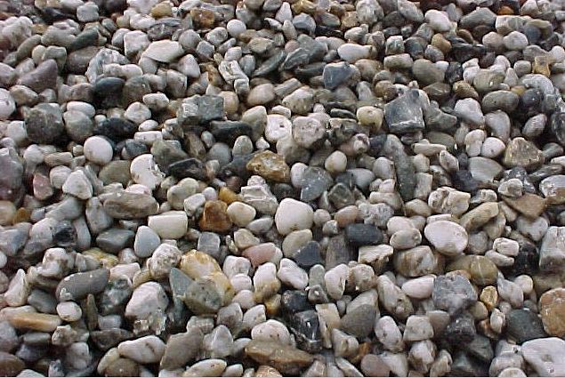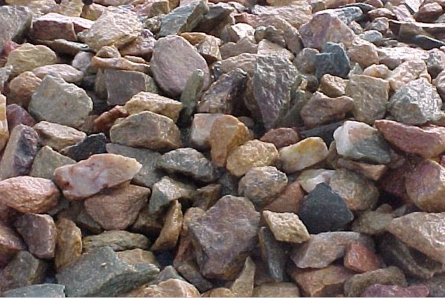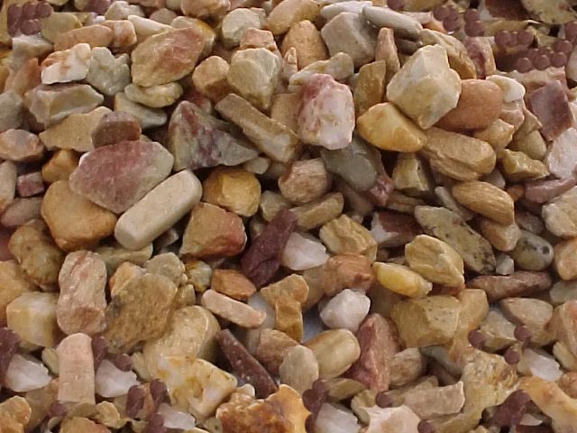 Foto's van verschillende soorten grind en split die een indruk geven van kleur, structuur en textuur.