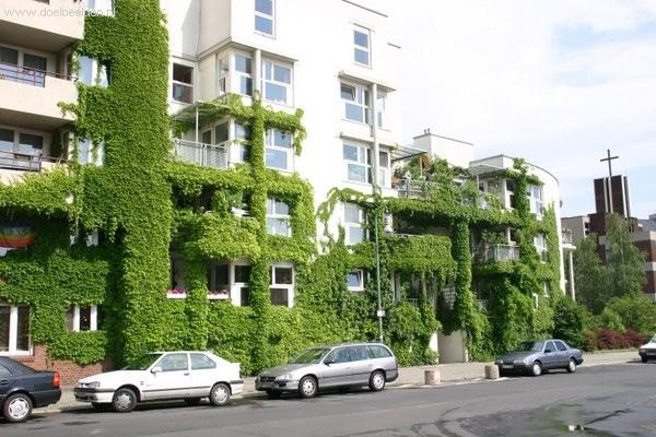 - bij goed onderhoud en een goede afweging en omvang van planten geeft de groengevel duidelijk een esthetische meerwaarde (zichtgroen)
