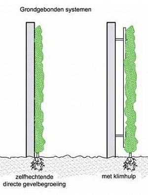 groengevel, grondgebonden systemen (zelfhechtend of met klimhulp): ![]() |