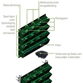 groengevel, druppelsysteem (verticale substraatkern, geluidswal): ![]() |
