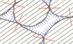 - het grondspanningsdiagram geeft daarom het verloop van de waterspanning (blauw gestreept in de figuren) en de verticale korrelspanning (rood gestreept); het totaal, dus het meest rechtse punt van het rood gestreepte deel, geeft de grondspanning op het beschouwde niveau.