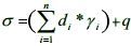 De totale grondbelasting wordt als volgt weergegeven, waarbij n het aantal lagen is, i de beschouwde laag is (van 1 tot n), d de dikte van die laag, γ het volumegewicht (van die grondsoort, in natte of droge toestand) en q de belasting: