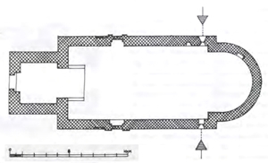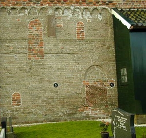 de pijlen geven de tweezijdige hagioscopen aan (niet gelijktijdig aangelegd) bij het kerkje van marsum (ada van deijk): ![]() |