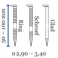 ankernagel, schroefnagel en gladde nagel met d-kop; de "ankers" worden ringen genoemd (conimeta): ![]() |