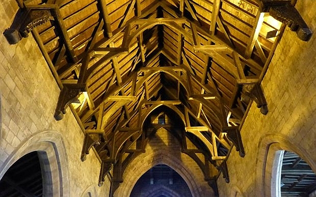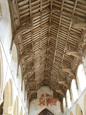 dubbele hamerbalk-kap, st. andrew church, shifnal, engeland; klik voor groter (foto robert beech, historic england): ![]() |