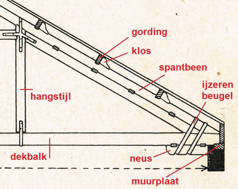 opengelaten, terwijl spantbenen, makelaar en dekbalk met ijzeren beugels aan