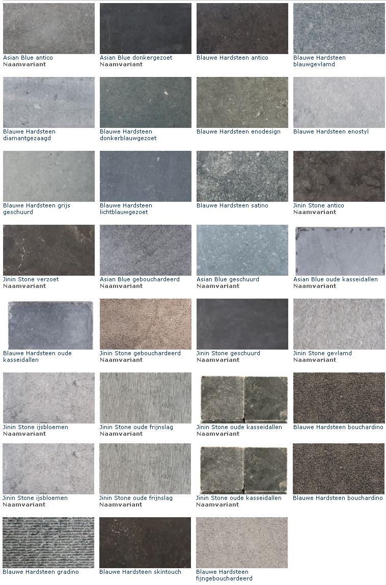 Blauwe hardsteen wordt ook blauwsteen, blauwe steen of arduin genoemd (pierre bleue). Andere