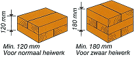 De mutsvulling dient van goed, droog en langdradig vurenhout te zijn; voor normaal heiwerk 2 lagen (haaks op elkaar liggend) hout van minimaal 60 mm per laag en voor zwaar heiwerk 3 lagen van elk 60 mm toepassen. Wanneer de dikte van de mutsvulling is teruggelopen tot ca. 1/3 van de oorspronkelijke dikte, dan dient de vulling vervangen te worden.