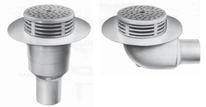 | onderuitloop bij een plat dak, recht (links) en haaks (rechts), beide met rooster (loromeij goor):  |