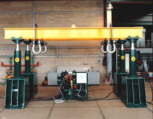 2. Een hijsbalk is een stalen balk waarmee voorwerpen van grote gewichten, bijvoorbeeld 400 ton, omhoog kunnen worden gehesen.