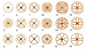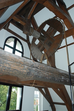 een aantal hijsraderen van verschilende vorm; klik voor groter! (frans kipp, nieuwsbrief 60 stichting bouwhistorie nederland, mei 2016): ![]() |
