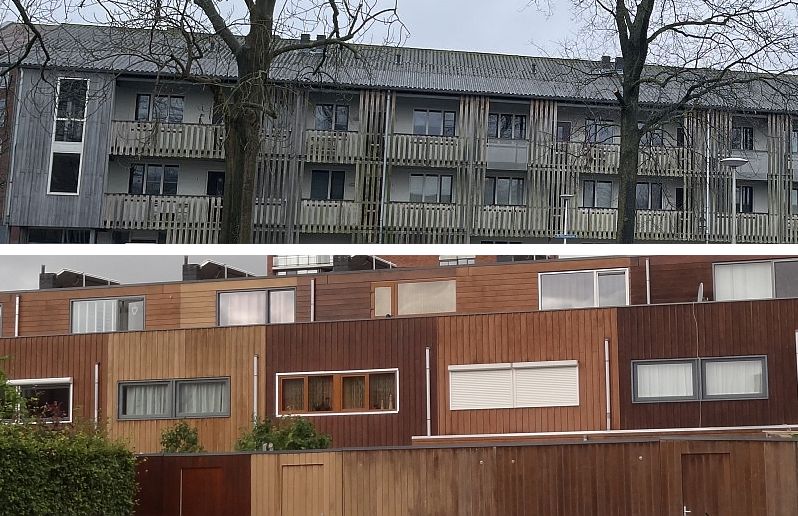 - Interessant is te zien hoe de vele houten gevelbekledingen de tijd doorstaan (deze foto's tonen hoe lelijk dat kan worden).