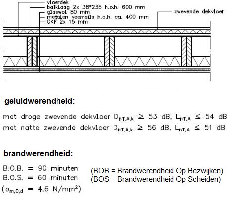 (Detail van een brandwerende en geluidwerende vloer, zie afbeelding.)