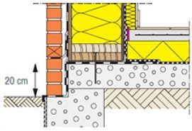 Buildwise raadt bij een gevel bij damptransport door diffusie aan "idealiter zorgt men ervoor dat de waterdampdoorlatendheid van de verschillende samenstellende lagen van de wand stelselmatig oploopt van binnen naar buiten" (dus naar buiten toe meer dampopen), verder moeten muurvoeten en kolomvoeten beschermd worden tegen optrekkend vocht (opstijgend vocht), dient de afstand tussen het afgewerkte buitenvloerpeil (maaiveld) en de onderregel minimaal 20 cm te zijn (afbeelding rechts), is het "in ieder geval streng verboden om houten wanden uit te voeren onder het afgewerkte buitenvloerpeil", zal het buitenspouwblad nooit helemaal waterdicht zijn en dus moet het water dat langs de binnenzijde van het buitenblad loopt naar buiten afgevoerd kunnen worden (open stootvoeg o.d.).