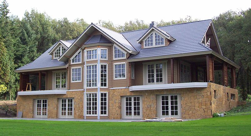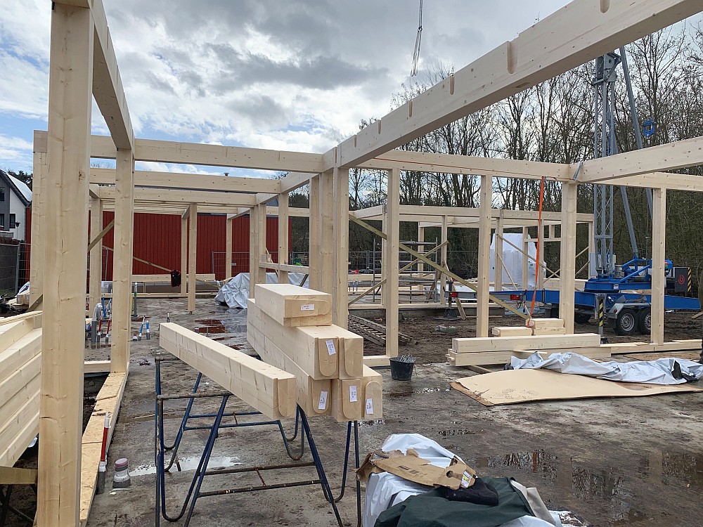Eng. timber framed house, framing, light frame construction, wood frame construction