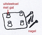 bevestiging van tegels aan de wand: tegel met geperforeerde uitsteeksels (en tegel), nagels door perforaties: ![]() |