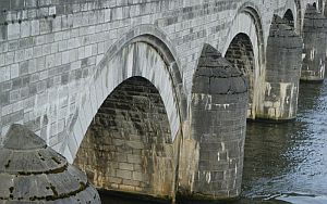 andere zijde van de ijsbreker-pijler; niet driehoekig, maar halfrond om turbulentie van het rivierwater aan die zijde van de brug tegen te gaan, maastricht (nederland monumentenland): ![]() |