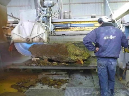 verzagen van een brok ijzerzandsteen ten behoeve van restauraties (door monument n.v., vision on technology vito): ![]() |