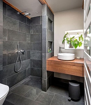 van de (bad)ruimte. "Een inloopdouche wordt vanwege zijn strakke uiterlijk steeds vaker toegepast in