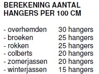 het aantal hangers op een stang is afhankelijk van de soort kleding (kastenstudio maatmeubel): ![]() |