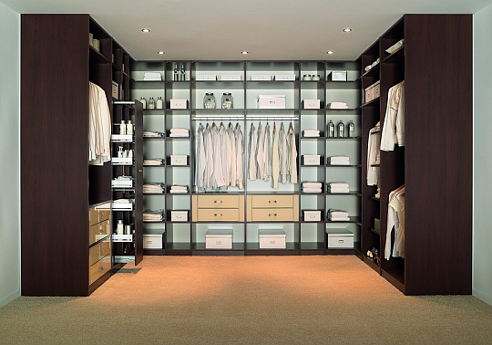 - veel accessoires zijn zeer handig: een uittrekbare broekenhouder vermijdt dat je alle broeken op kleerhangers moet hangen of op moet vouwen, verder zijn er bijvoorbeeld nog een schoenenrek en een stropdassenhouder (ook voor riemen of halskettingen); soms tref je een wasmand aan, maar die is niet zo fris in een inloopkast/garderobekamer