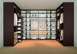 - het materiaal van de kastonderdelen kan afgestemd worden op de slaapkamer of badkamer (waar de inloopkast mee verbonden kan zijn)