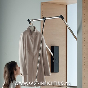 garderobelift, kledinglift: vergemakkelijkt ophangen en afhalen hoger opgehangen kleding; maakt hogere kasten en dus meer bergruimte mogelijk (kast-inrichting.nl): ![]() |