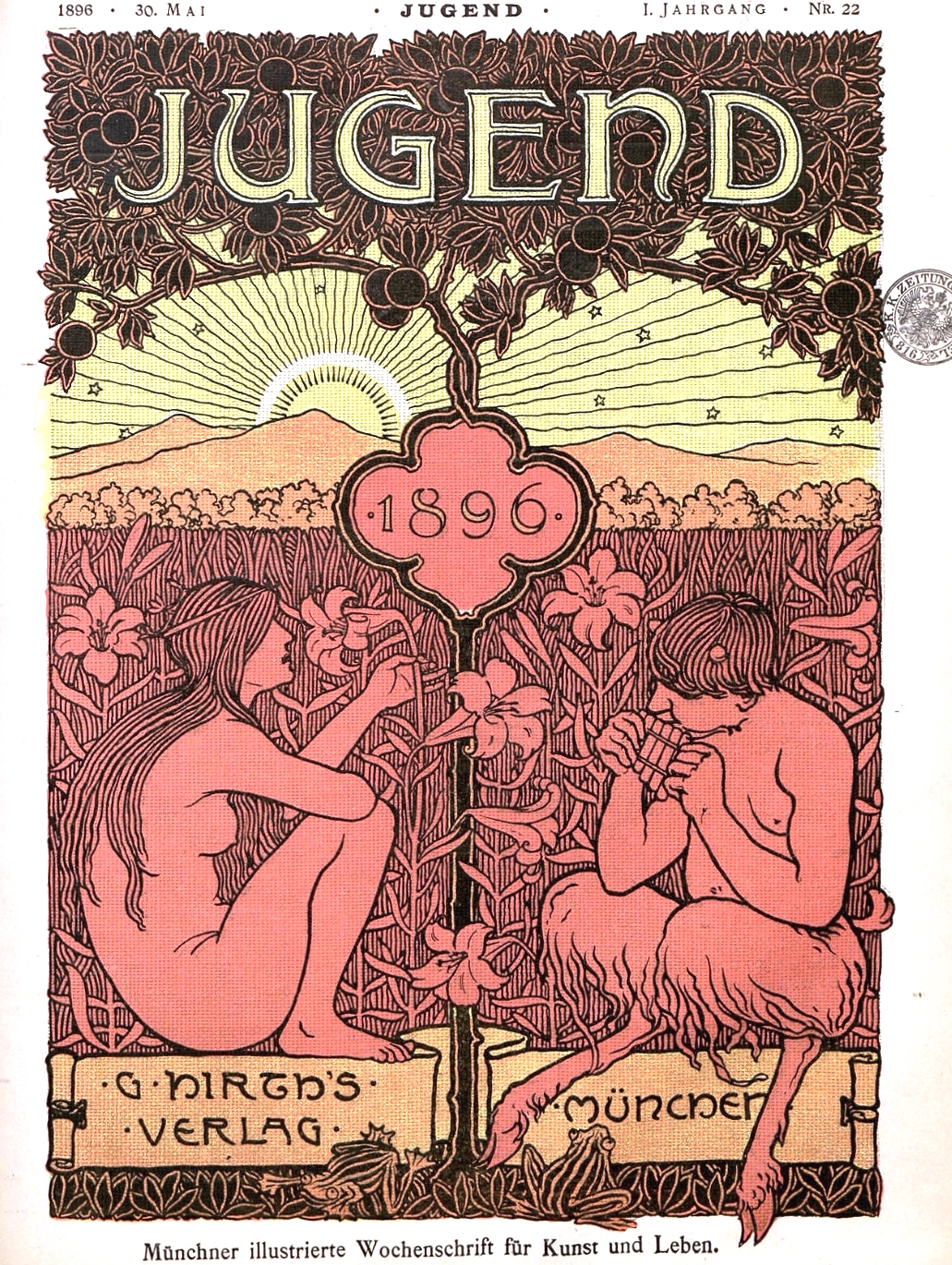 | florale jugendstil; hoe de jugendstil aan haar naam komt, het tijdschrift jugend van 1896 (wikipedia, university of heidelberg):  |