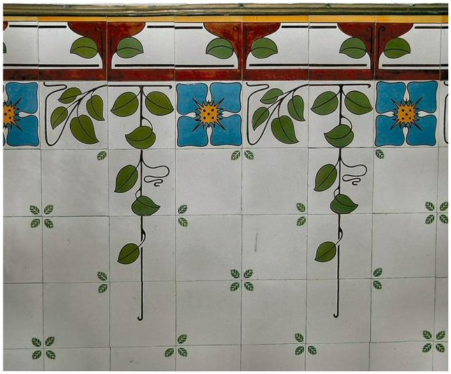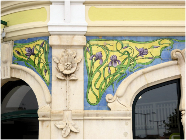 - de  florale (motieven uit natuur, naast de zweepslaglijnen de meest kenmerkende eigenschap van de Jugendstil)